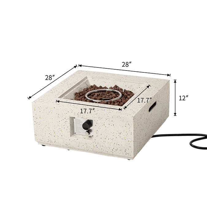 Terrazzo is a special craftsmanship. Its history can be traced back to ancient mosaics in Egypt, and it originates in Italy. Glass and granite are mixed with MgO Composite. After solidification, the surface will be ground and polished. They are like gems inlaid on the surface of fire pit. Its clean and neat color suits for all kinds of patios with different styles. Propane fire pit table makes for the ideal outdoor centerpiece and easy to move. The whole set is a good view of the patio.