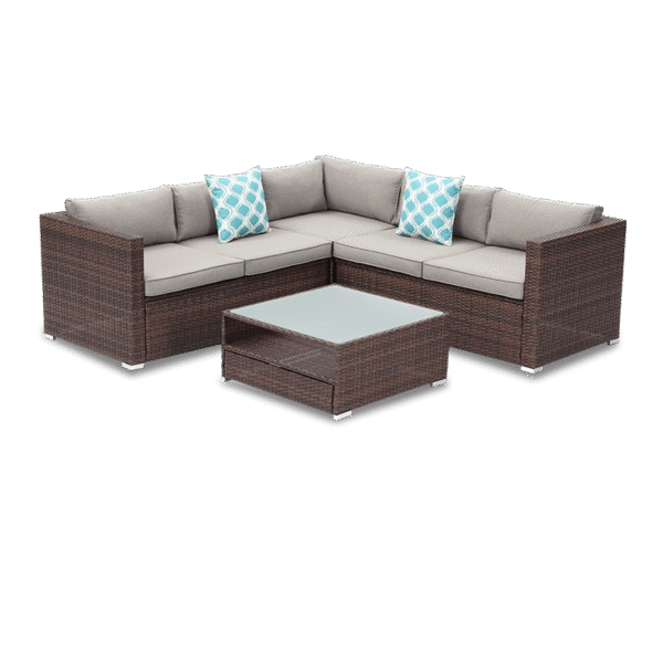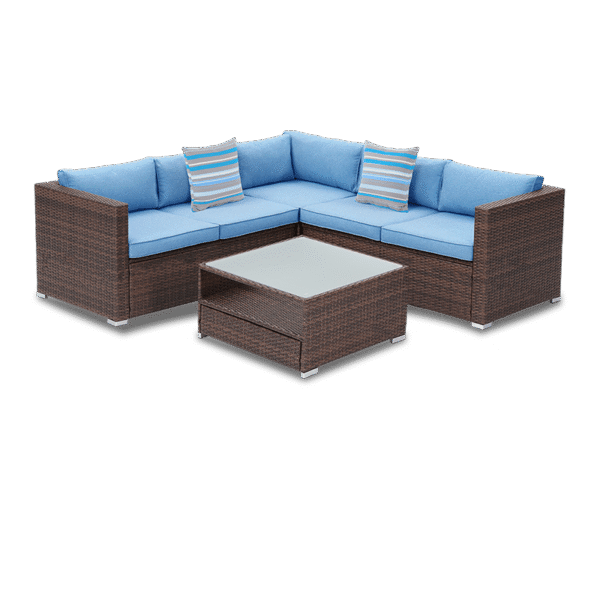 Hygge 4 Piece L Shaped Brown Wicker Outdoor Sectional