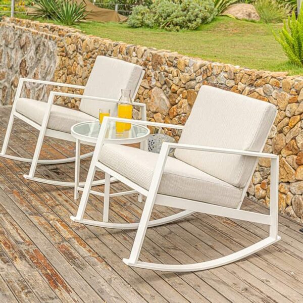 Niihau White Outdoor Furniture Rocking Chair Set