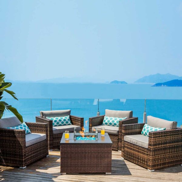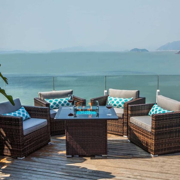 When the sun sets and your outdoor paradise begins to cool a bit, it’s time to have fun. Light the fire pit table and warm up the patio at that moment. This stylish stone like fire table will attract all people’s sight. This sleek stainless steel burner not only looks durable, but the materials used are also designed to with stand the heat of the fire. A magnesium oxide coated metal table with the appearance of a stone finish, which is more resistant to heat and flame. What could be cozier? Clean burning propane flame provides soothing warmth, gentle lighting and a centerpiece for many outdoor evenings worth remembering.