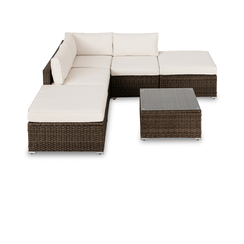 | Side Cushion(in.) | 22.4″L × 3.9″W × 13.4″H | Coffee Table(in.) | 26.6″ D × 26.6″ W × 13.6″ H |