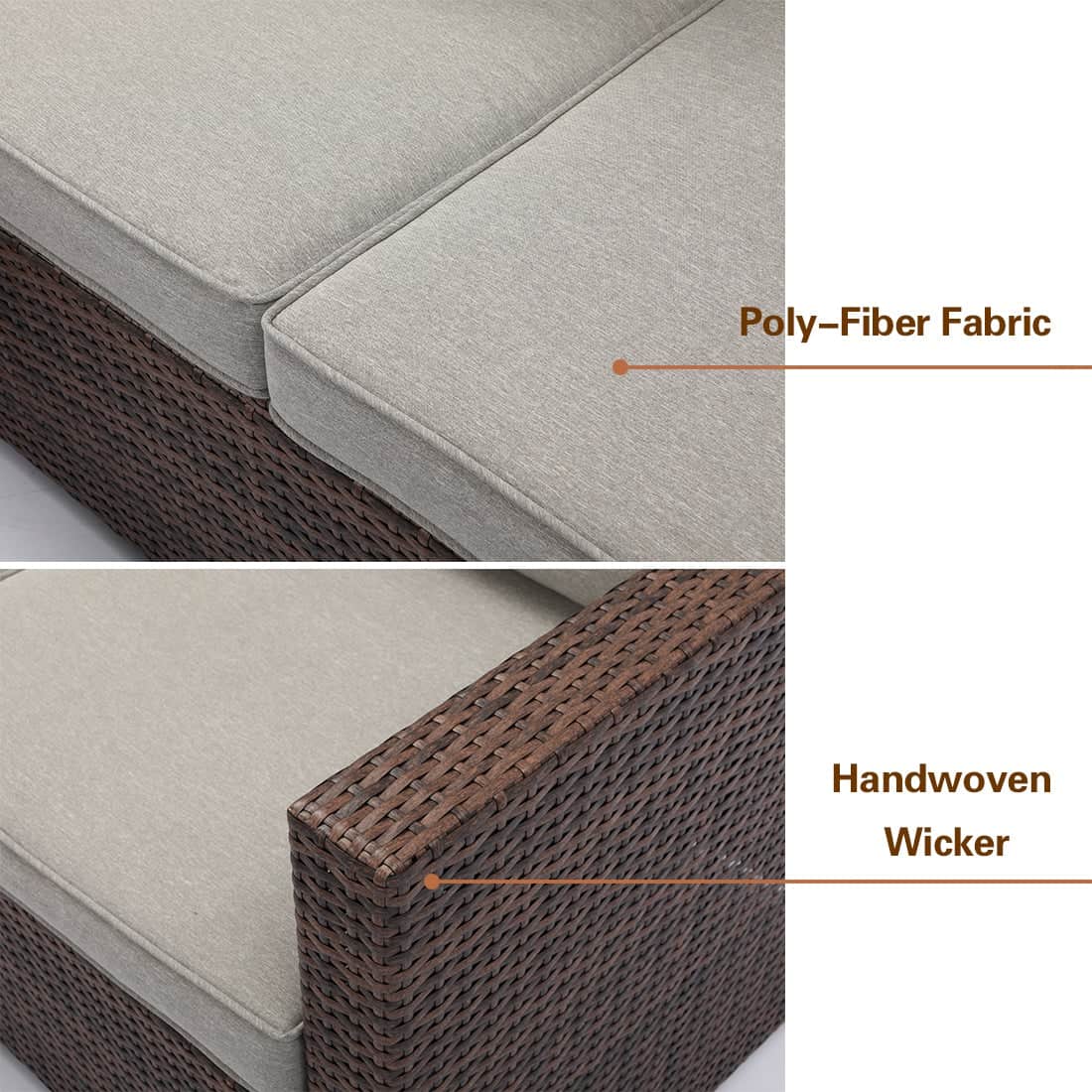 - Hand-woven and all-weather synthetic PE resin wicker