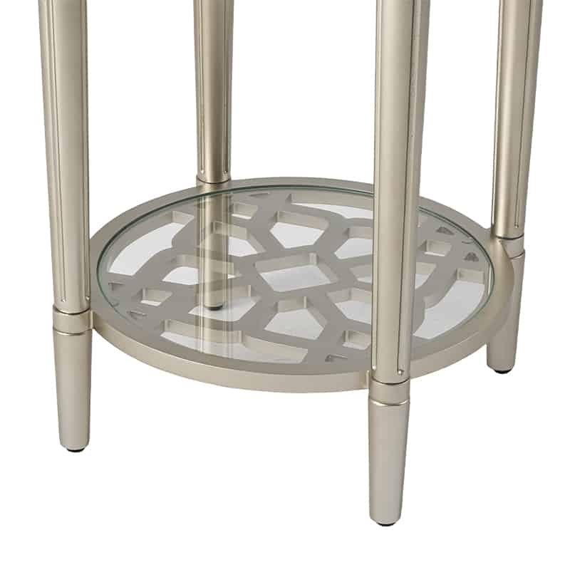 The intricate detailing and refined luxury of this round glass side table tell your guests you are a person of discerning taste.