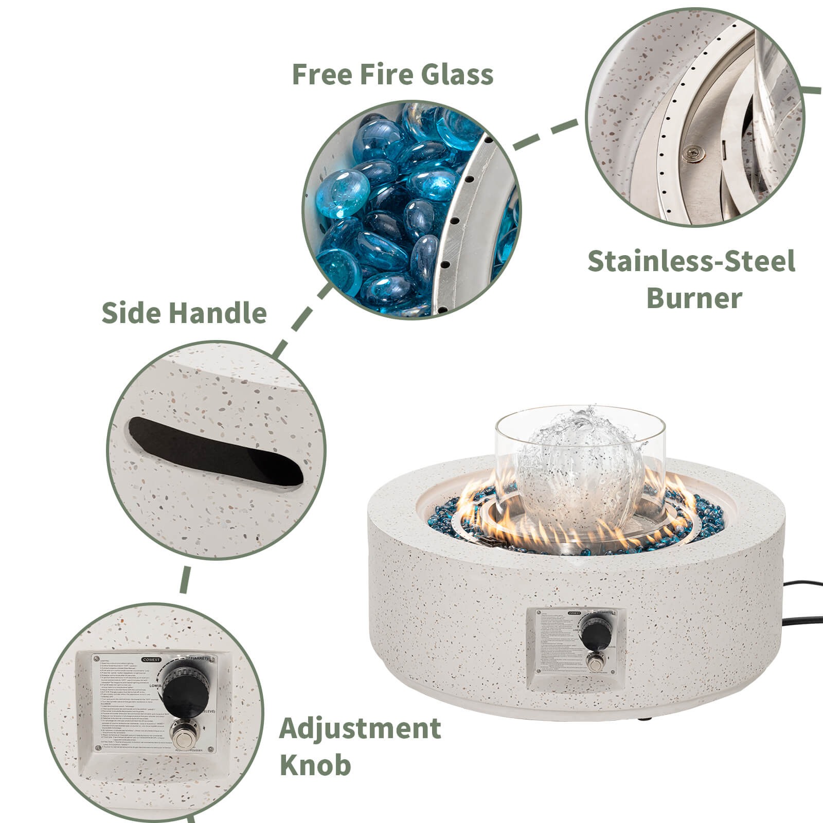 - Fire Pit Material: Magnesium Oxide Composite