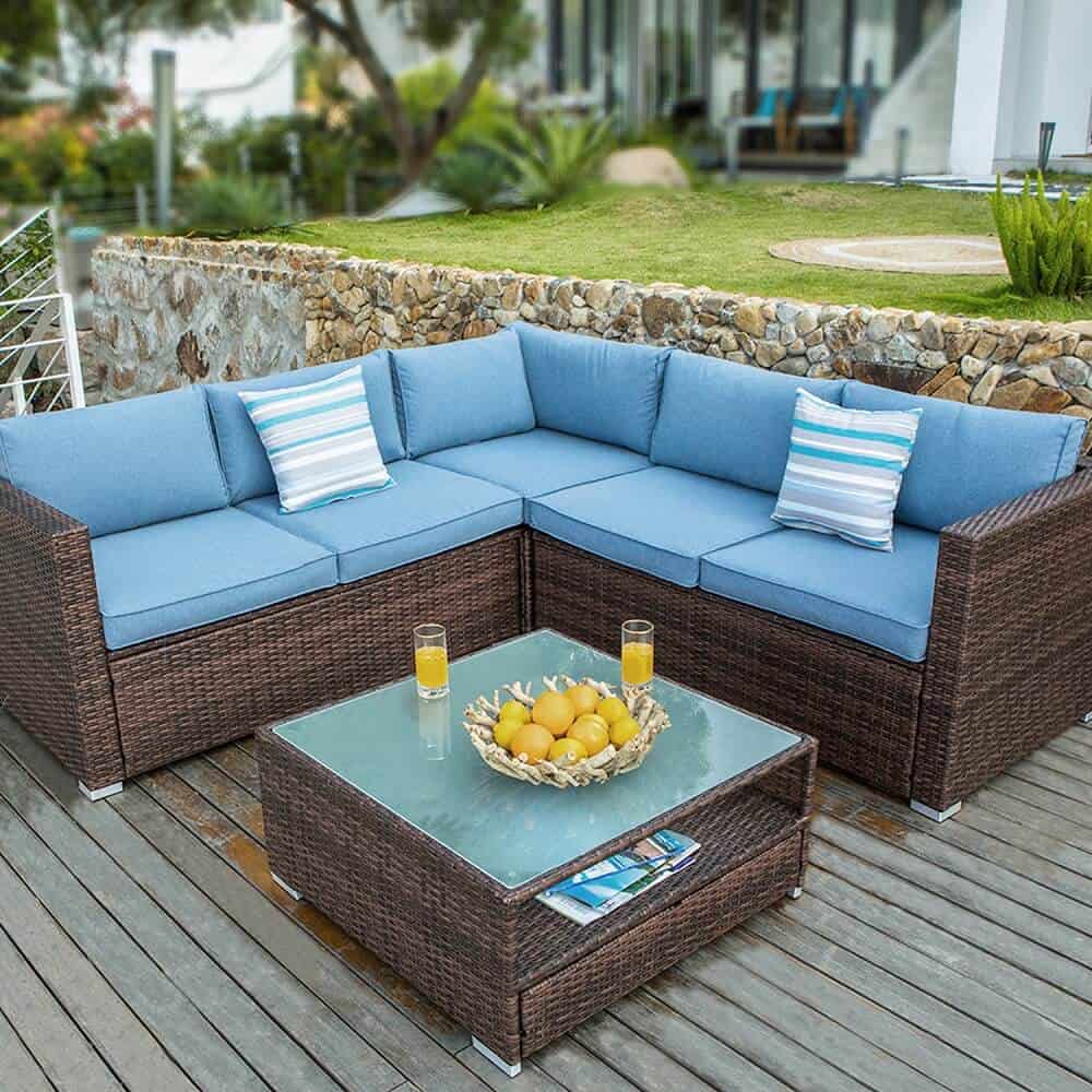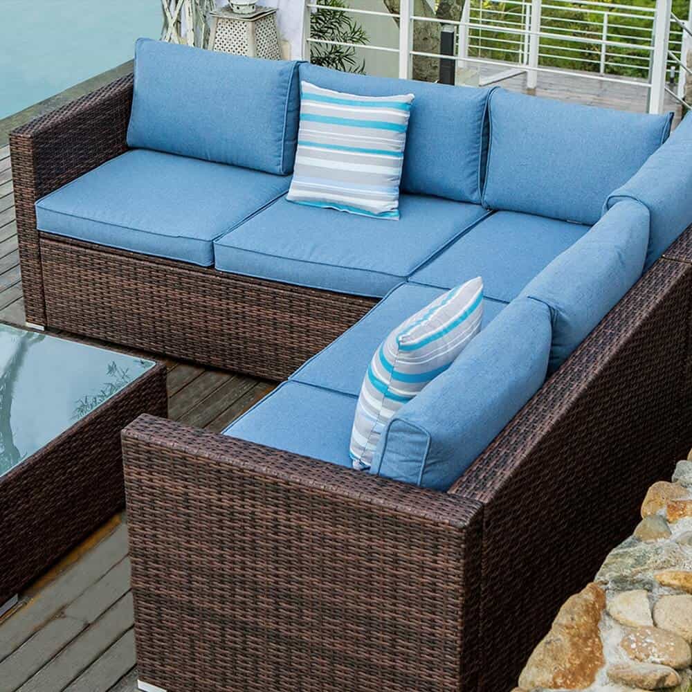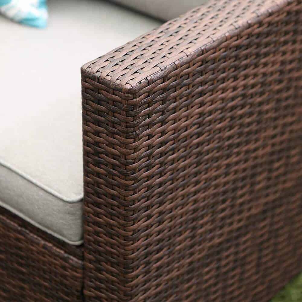 The outdoor furniture set is made of a sturdy powder-coated steel frame to ensure durability and stability. PE rattan wicker covered around conversation set protected for long-lasting beauty. The outdoor rattan furniture equipped with very soft cushions that will make you forget your fatigue. The wicker sofa set is composed of 4 parts, you can change it into a different look according to your needs. The simple style is ideal for any garden, backyard, porch, patio, or outdoors. You can put some drinks or snacks on the table, and then sit down to enjoy the nice life.