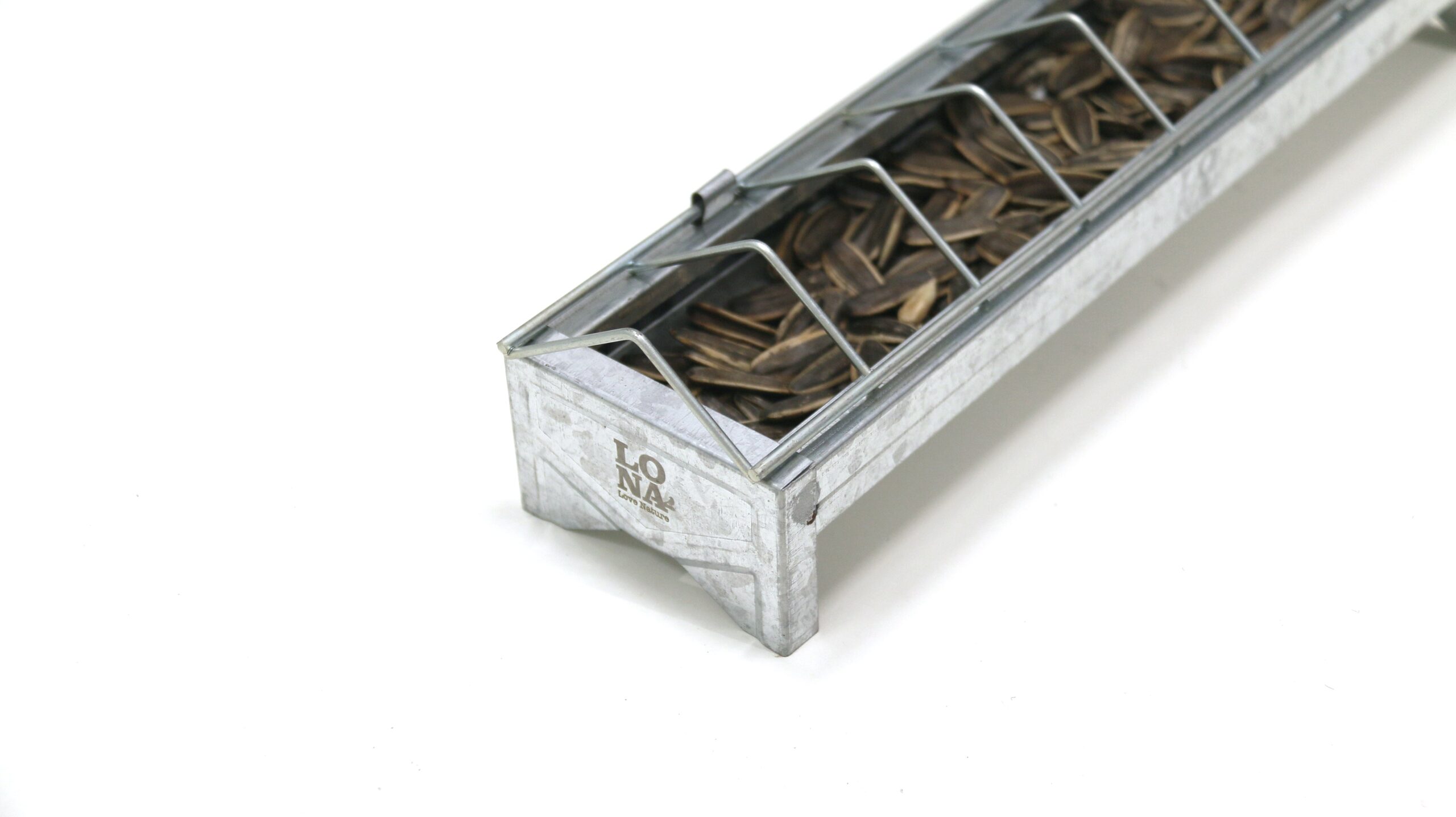 LO NA V10 is an metal feeder, that protects small garden birds against natural predators such as cats and larger birds, allowing them to forage in peace & quiet. Treat birds to multiple LO NA Love Nature feeds at once . The V10 can also be used with LO NA Love Nature peanut butter. Small garden birds such as tits, finches and sparrows will fly to the cage to feast on high-energy LO NA Love Nature garden bird feeds. A fantastic sight! Easy to attach to a wall, downpipe, tree trunk, fence or pergola.