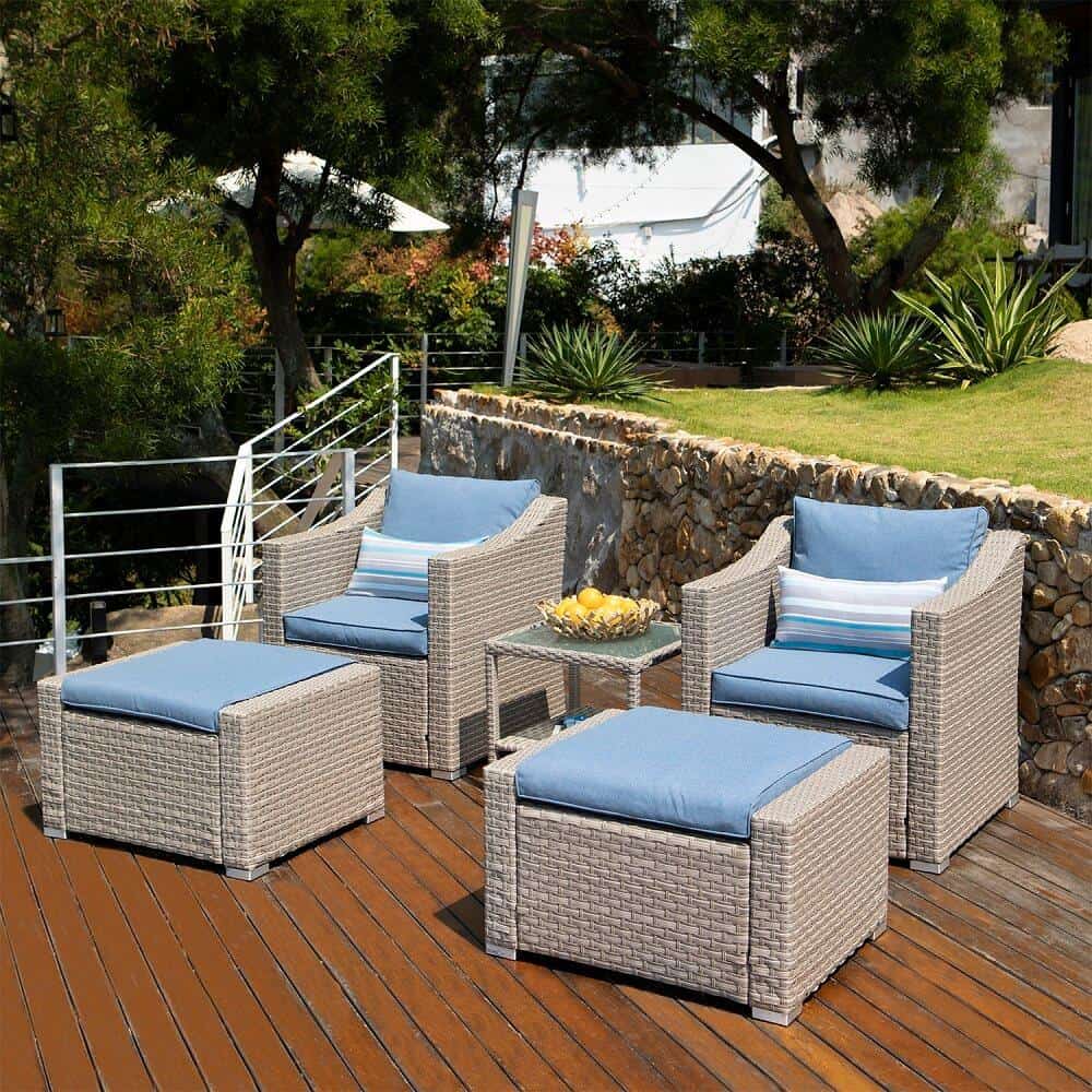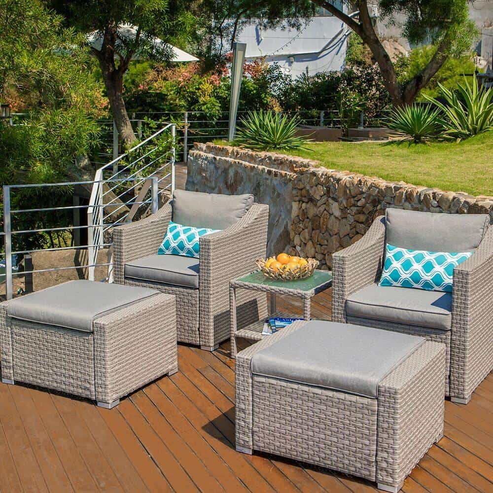 - Hand-woven and all-weather synthetic PE resin wicker