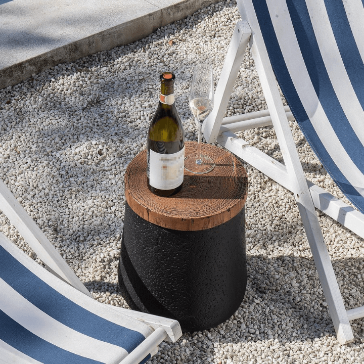 A light brown hand-painted faux wood slab table top is accented by the dark brown cork-like texture of the unique shaped base. Earthy texture and wood grain appearance is masterfully crafted from sturdy yet lightweight MgO composite. No trees were harmed. These antique-style side tables feature vintage yet stylish designs. The designs give each piece its own history and a unique look, which will make a distinctive addition to your house. Whether you are looking for a coffee table to place your food and drinks, end table for a lamp, vase or other decorative items even as a stool, this side table is the perfect choice for you. Great for patio, balcony, and everywhere you want.